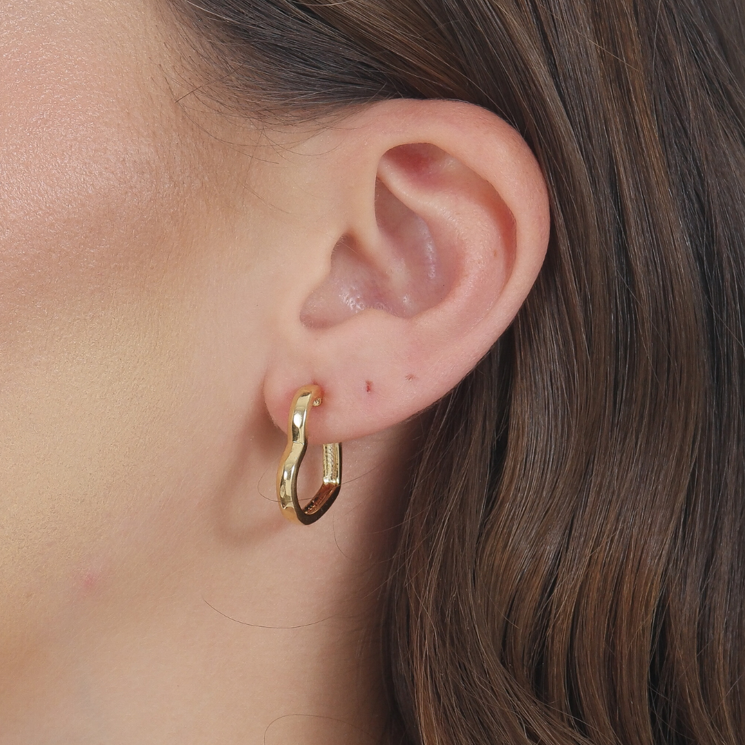 Brinco Coração Deitado Fio Abaulado Aberto - Banho Ouro 18k