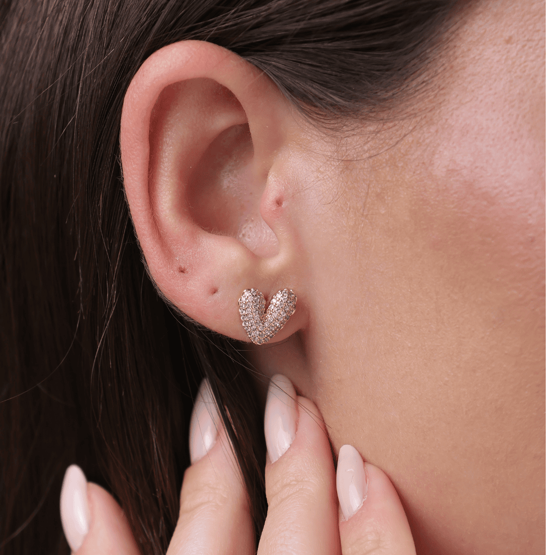 Delicado e marcante, esse brinco coração orgânico cravejado em zircônias é a peça que não pode faltar para valorizar a sua produção.
