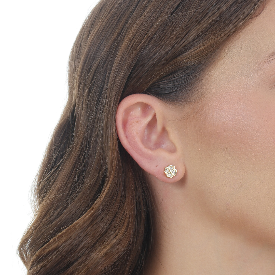BRINCO TREVO COM QUATRO ZIRCÔNIAS E BANHO DE OURO 18K